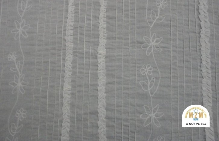 Cotton Pintuck Fabrics from India feature delicate, hand-stitched pleats or tucks that create a textured, raised pattern. These fabrics are soft, breathable, and often used in elegant apparel, offering both style and comfort.