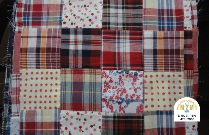 Cotton Patchwork Fabrics from India are vibrant textiles made by stitching together colorful cotton pieces in various patterns and designs. These fabrics reflect traditional craftsmanship and are ideal for quilts, apparel, and home decor items.