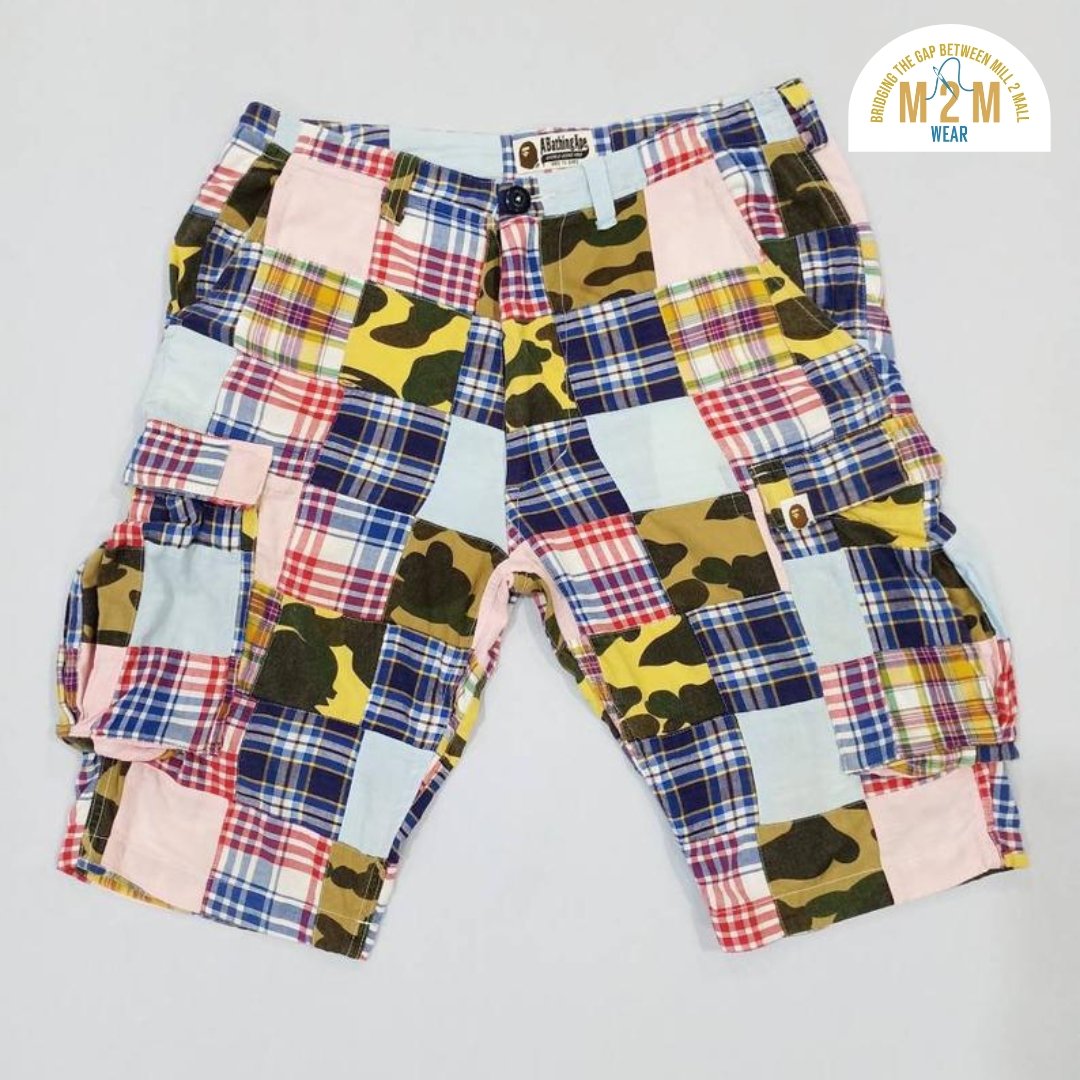 Plain weave base; constructed by stitching pre-printed cotton fabric patches in grid or panel layouts. May feature either visible topstitching or seamless joining depending on style.