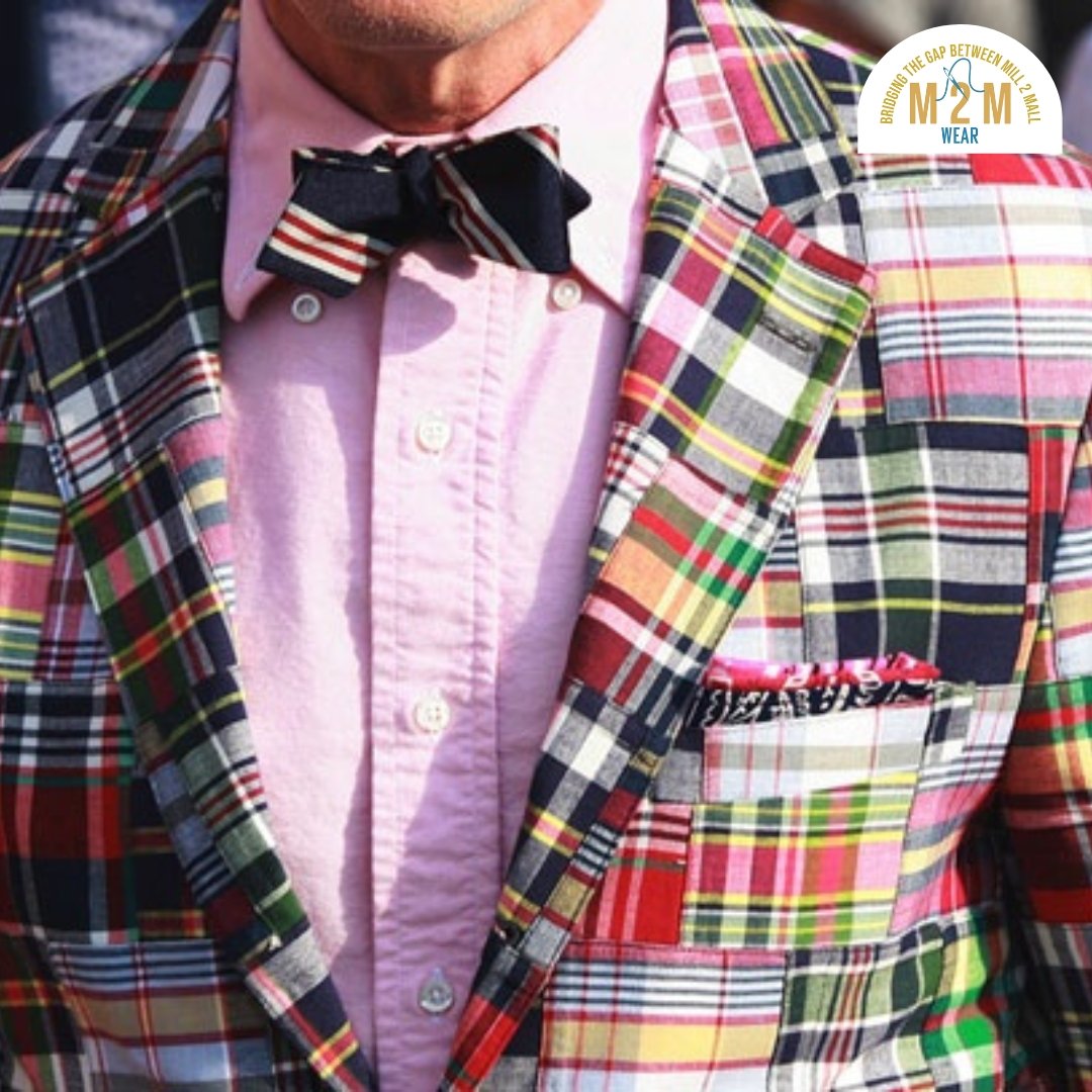 Plain weave base; constructed by stitching pre-printed cotton fabric patches in grid or panel layouts. May feature either visible topstitching or seamless joining depending on style.