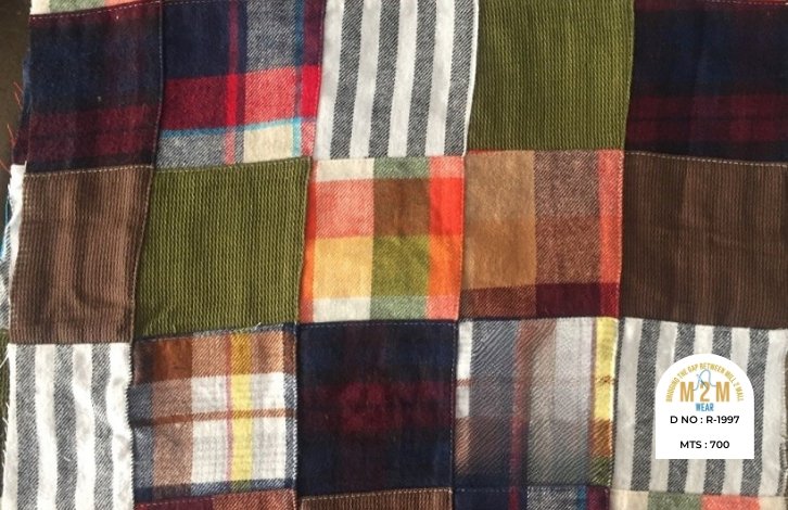 No post-printing—patterns are derived from yarn-dyed or pre-printed flannel patches; design achieved through patchwork assembly