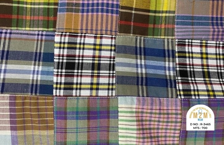 Plain weave base; constructed by stitching pre-printed cotton fabric patches in grid or panel layouts. May feature either visible topstitching or seamless joining depending on style.