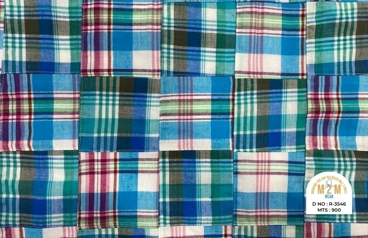 Plain weave base; constructed by stitching pre-printed cotton fabric patches in grid or panel layouts. May feature either visible topstitching or seamless joining depending on style.