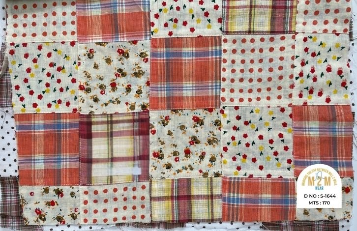 Cotton Print Patchwork Fabrics from India are created by combining printed cotton pieces in various patterns, resulting in a colorful, textured fabric. These fabrics are ideal for quilts, garments, and creative home decor, reflecting vibrant craftsmanship.