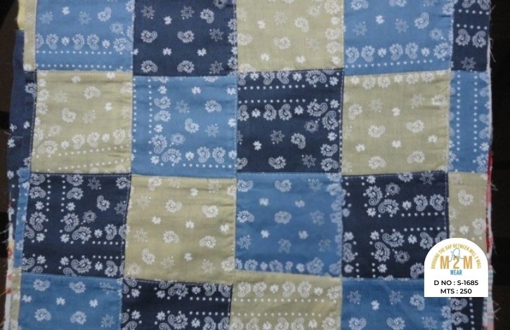 Cotton Print Patchwork Fabrics from India are created by combining printed cotton pieces in various patterns, resulting in a colorful, textured fabric. These fabrics are ideal for quilts, garments, and creative home decor, reflecting vibrant craftsmanship.