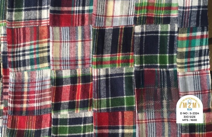 No post-printing—patterns are derived from yarn-dyed or pre-printed flannel patches; design achieved through patchwork assembly