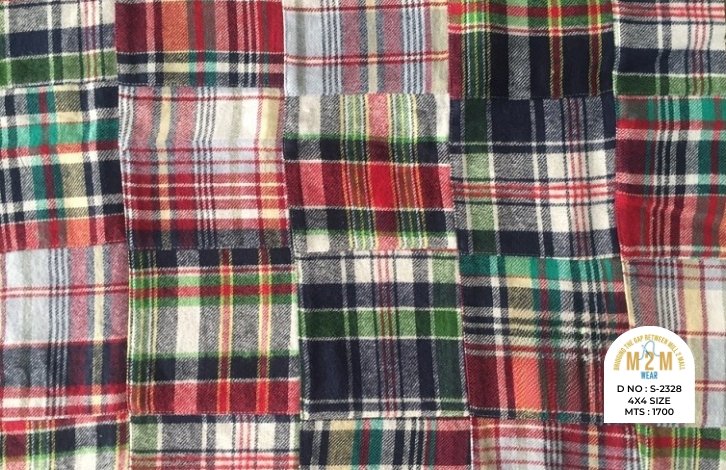No post-printing—patterns are derived from yarn-dyed or pre-printed flannel patches; design achieved through patchwork assembly