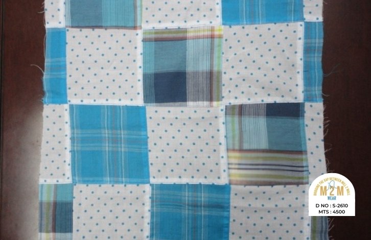 Cotton Print Patchwork Fabrics from India are created by combining printed cotton pieces in various patterns, resulting in a colorful, textured fabric. These fabrics are ideal for quilts, garments, and creative home decor, reflecting vibrant craftsmanship.