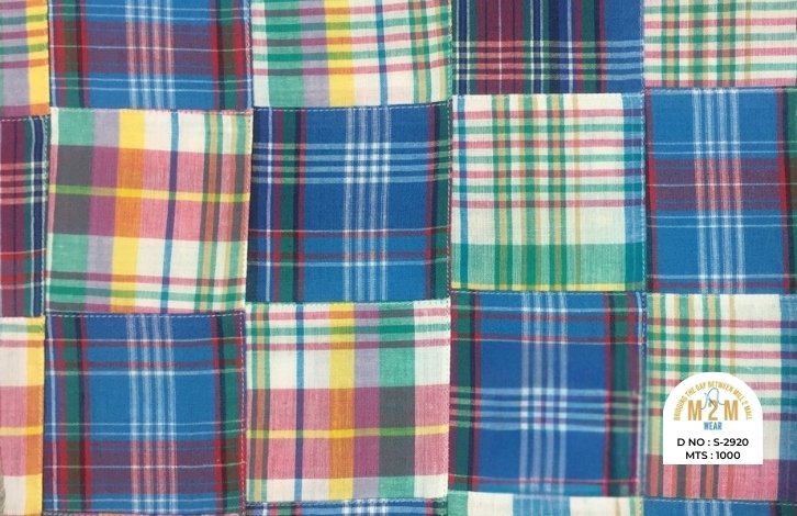 Plain weave base; constructed by stitching pre-printed cotton fabric patches in grid or panel layouts. May feature either visible topstitching or seamless joining depending on style.