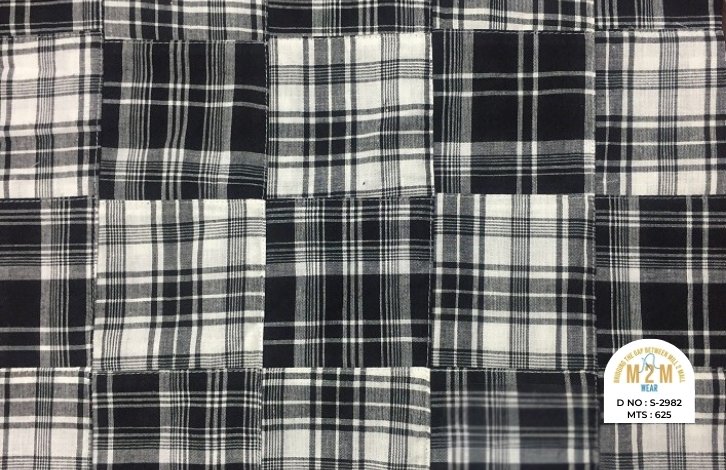Plain weave base; constructed by stitching pre-printed cotton fabric patches in grid or panel layouts. May feature either visible topstitching or seamless joining depending on style.