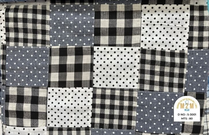 Cotton Print Patchwork Fabrics from India are created by combining printed cotton pieces in various patterns, resulting in a colorful, textured fabric. These fabrics are ideal for quilts, garments, and creative home decor, reflecting vibrant craftsmanship.