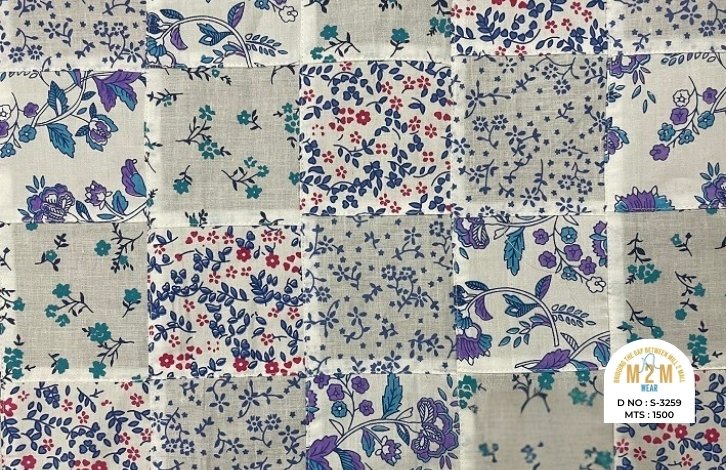 Cotton Print Patchwork Fabrics from India are created by combining printed cotton pieces in various patterns, resulting in a colorful, textured fabric. These fabrics are ideal for quilts, garments, and creative home decor, reflecting vibrant craftsmanship.