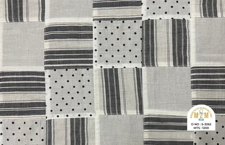 Cotton Print Patchwork Fabrics from India are created by combining printed cotton pieces in various patterns, resulting in a colorful, textured fabric. These fabrics are ideal for quilts, garments, and creative home decor, reflecting vibrant craftsmanship.