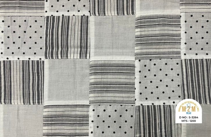 Cotton Print Patchwork Fabrics from India are created by combining printed cotton pieces in various patterns, resulting in a colorful, textured fabric. These fabrics are ideal for quilts, garments, and creative home decor, reflecting vibrant craftsmanship.