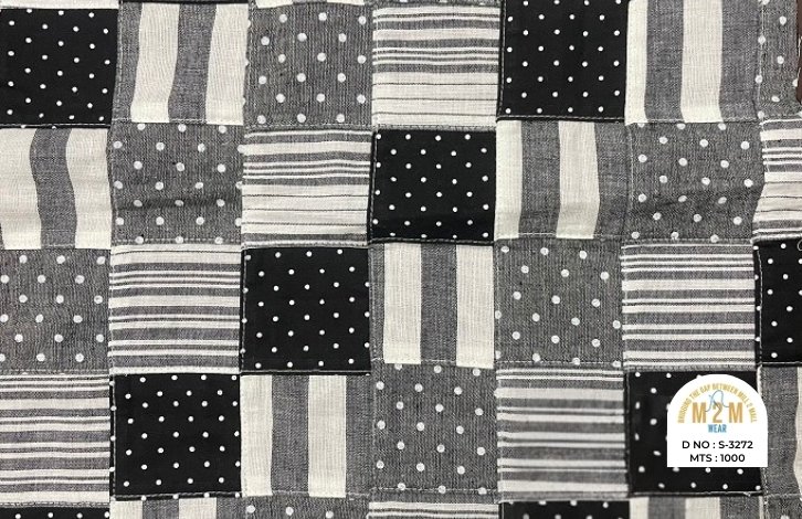 Cotton Print Patchwork Fabrics from India are created by combining printed cotton pieces in various patterns, resulting in a colorful, textured fabric. These fabrics are ideal for quilts, garments, and creative home decor, reflecting vibrant craftsmanship.