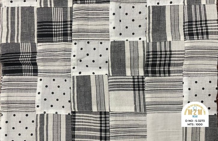 Cotton Print Patchwork Fabrics from India are created by combining printed cotton pieces in various patterns, resulting in a colorful, textured fabric. These fabrics are ideal for quilts, garments, and creative home decor, reflecting vibrant craftsmanship.