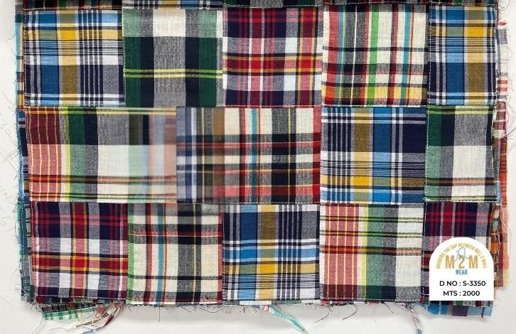 Plain weave base; constructed by stitching pre-printed cotton fabric patches in grid or panel layouts. May feature either visible topstitching or seamless joining depending on style.