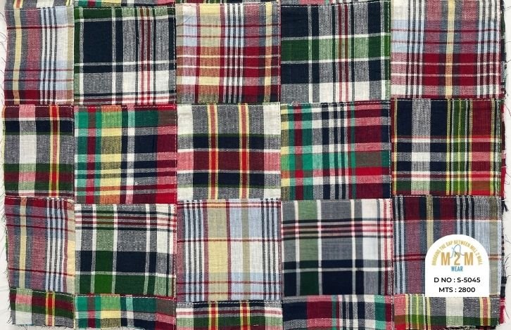 Plain weave base; constructed by stitching pre-printed cotton fabric patches in grid or panel layouts. May feature either visible topstitching or seamless joining depending on style.