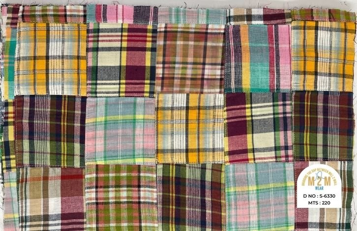 Plain weave base; constructed by stitching pre-printed cotton fabric patches in grid or panel layouts. May feature either visible topstitching or seamless joining depending on style.
