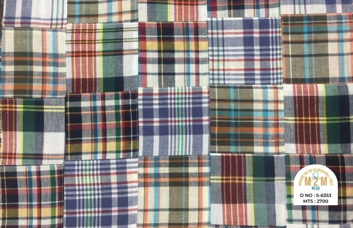 Plain weave base; constructed by stitching pre-printed cotton fabric patches in grid or panel layouts. May feature either visible topstitching or seamless joining depending on style.