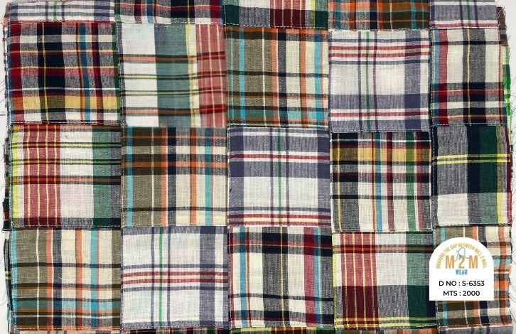 Plain weave base; constructed by stitching pre-printed cotton fabric patches in grid or panel layouts. May feature either visible topstitching or seamless joining depending on style.