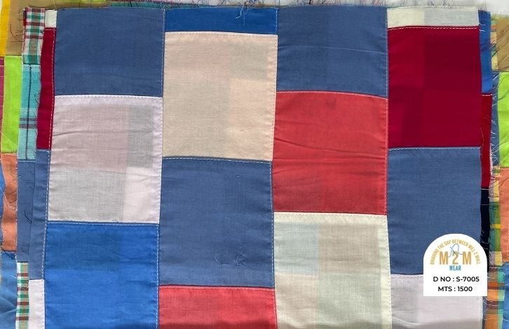 Cotton Print Patchwork Fabrics from India are created by combining printed cotton pieces in various patterns, resulting in a colorful, textured fabric. These fabrics are ideal for quilts, garments, and creative home decor, reflecting vibrant craftsmanship.