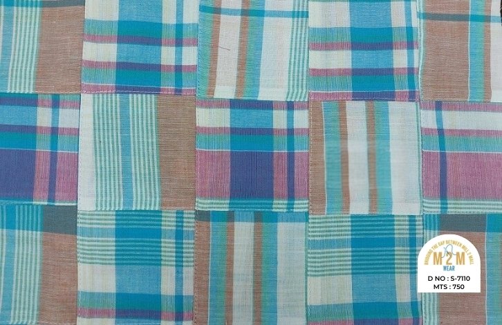 Plain weave base; constructed by stitching pre-printed cotton fabric patches in grid or panel layouts. May feature either visible topstitching or seamless joining depending on style.