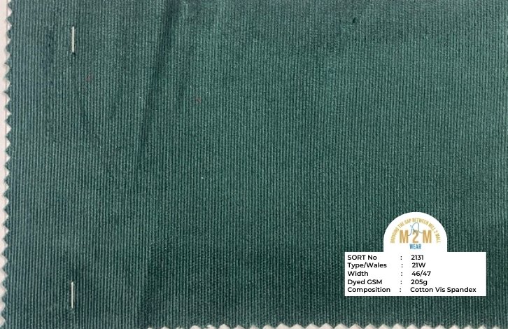 Corduroy Fabrics from India are durable textiles characterized by their distinctive ribbed texture, created by weaving cotton fibers into vertical ridges. Known for their softness and warmth, these fabrics are commonly used for clothing like jackets, pants, and skirts.