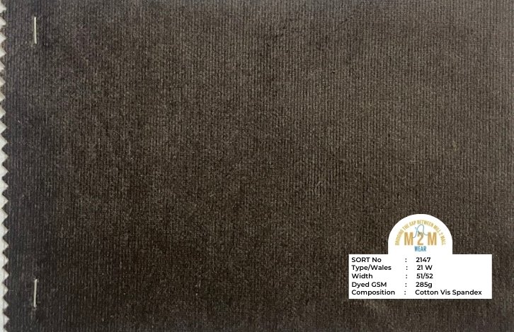 A textured fabric with raised parallel ridges ("wales"), giving it a soft, ribbed feel. Durable, warm, and slightly stretchy depending on content. A textured fabric with raised parallel ridges ("wales"), offering a soft, velvety feel and durability.
